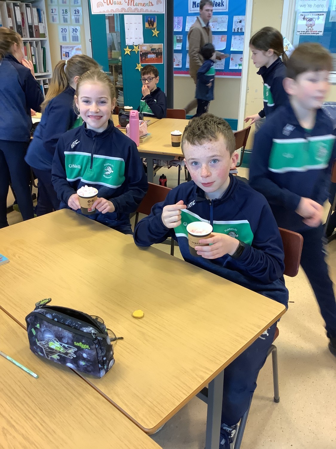 Primary 6 warm up after a chilly walk!